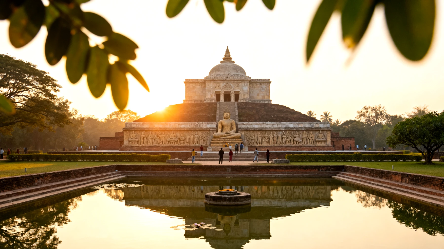 Das World Peace Pagoda, eine strahlend weiße Stupa am Rand des Hauptgeländes, bietet einen Panoramablick über die gesamte Anlage. Der kurze Aufstieg ist auch mit Kindern machbar und wird mit einer Aussicht belohnt, die bis zu den fernen Himalaya-Ausläufern reicht – im klaren Dezemberlicht ein unvergesslicher Anblick.